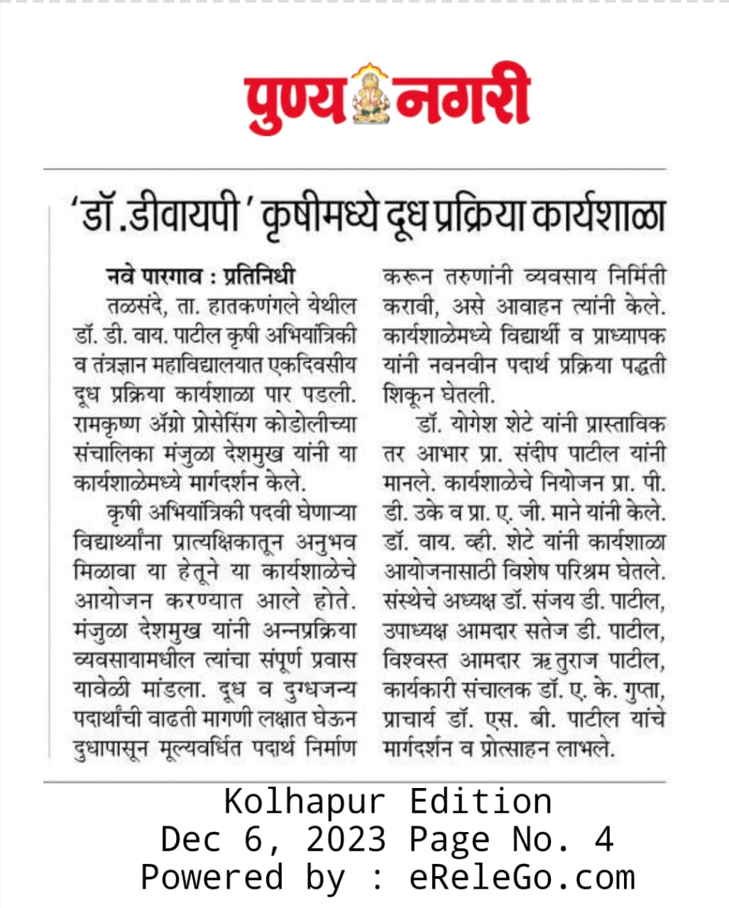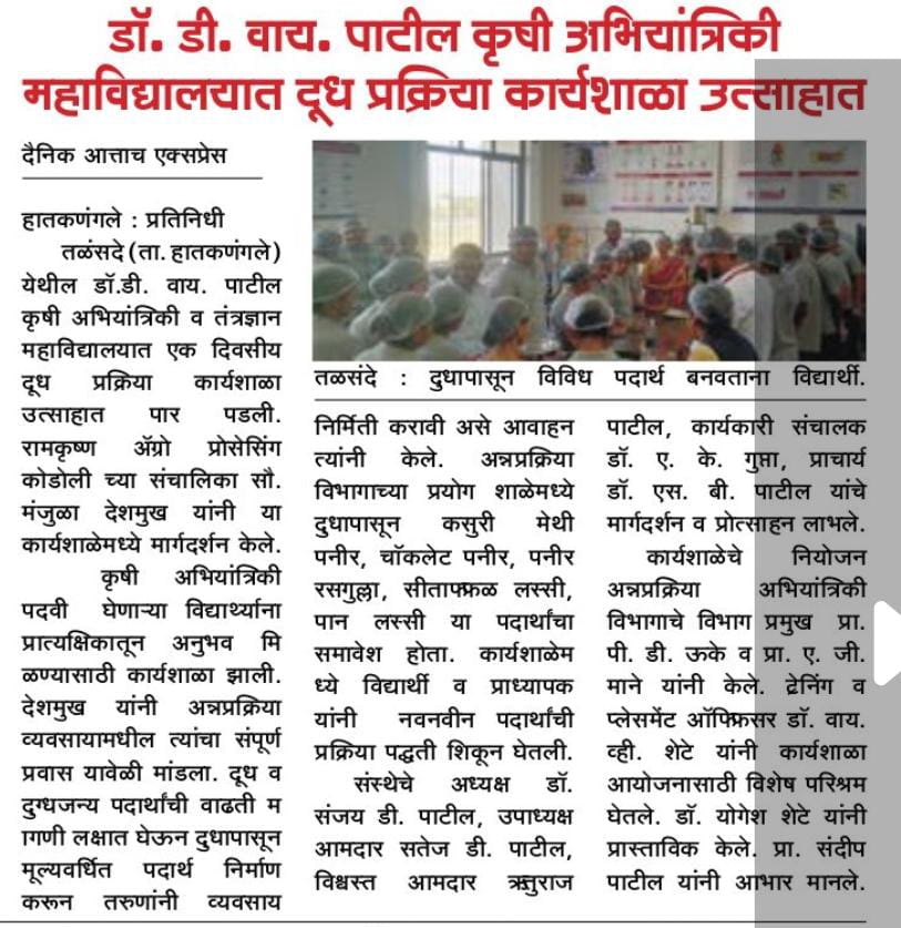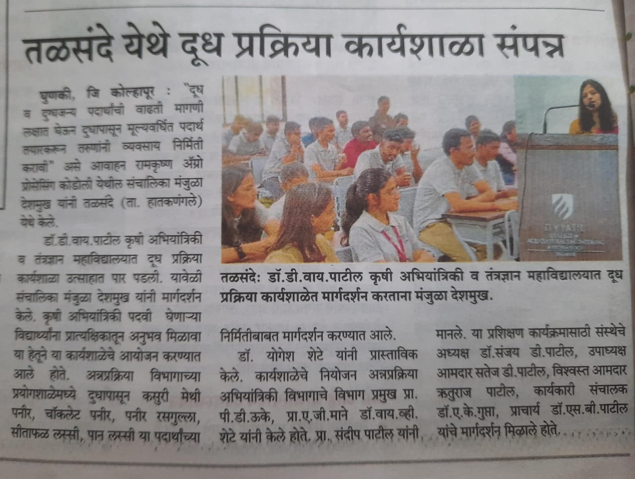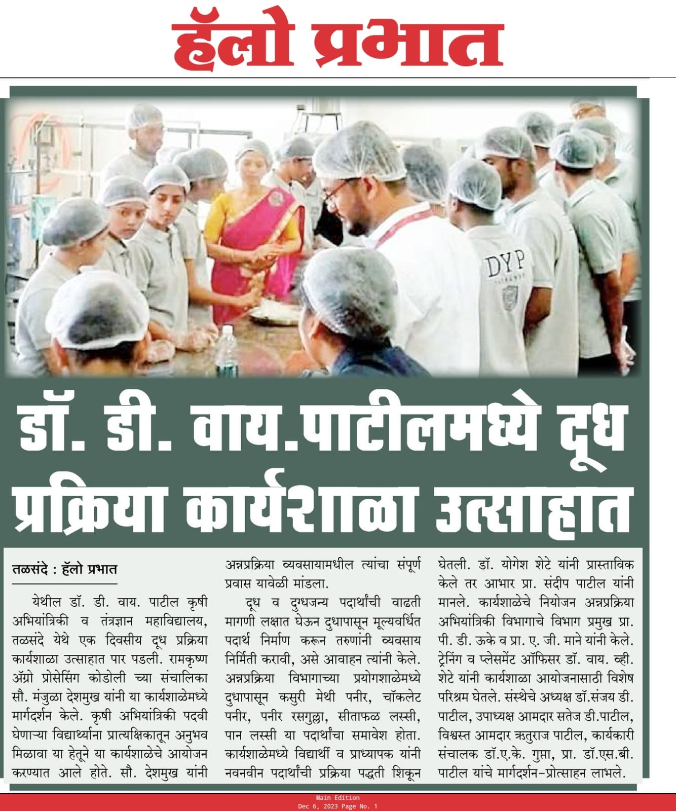 | Workshop on Value addition of Milk & Milk Processing, 2 DEC 2023 |